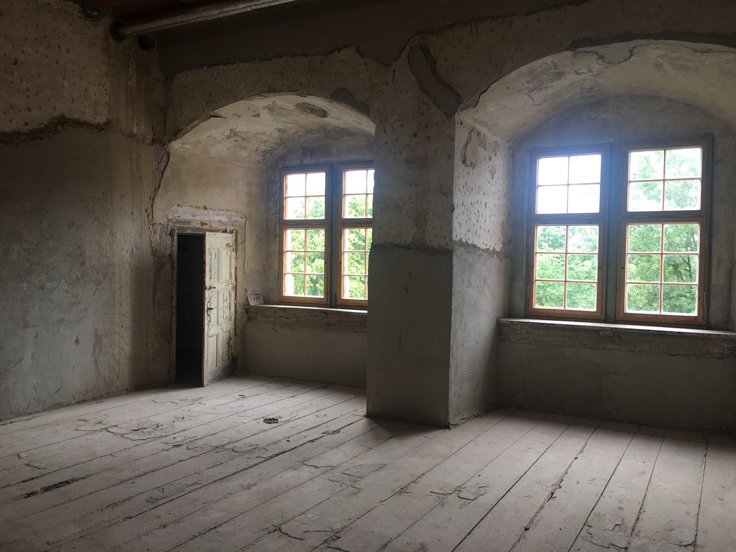 Blick in einen der ehemaligen Mädchenschlafräume im Französischen Bau der Heldburg.